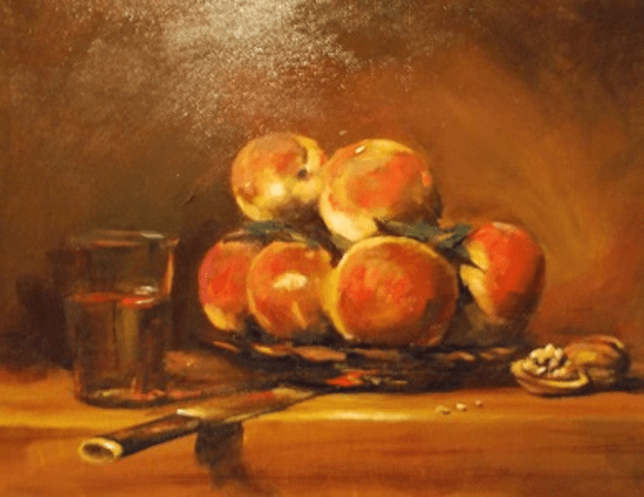 Master Study, Basket of Peaches, acrylic, Oehlke 2013